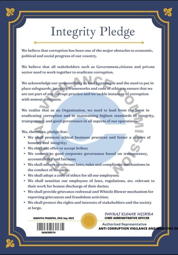 Welcome to the Anti-Corruption, Vigilance and Maritime Grievance Forum of India (ACVMGFI) โ a national-level initiative dedicated to upholding transparency, justice, and accountability across Indiaโs maritime and social sectors.