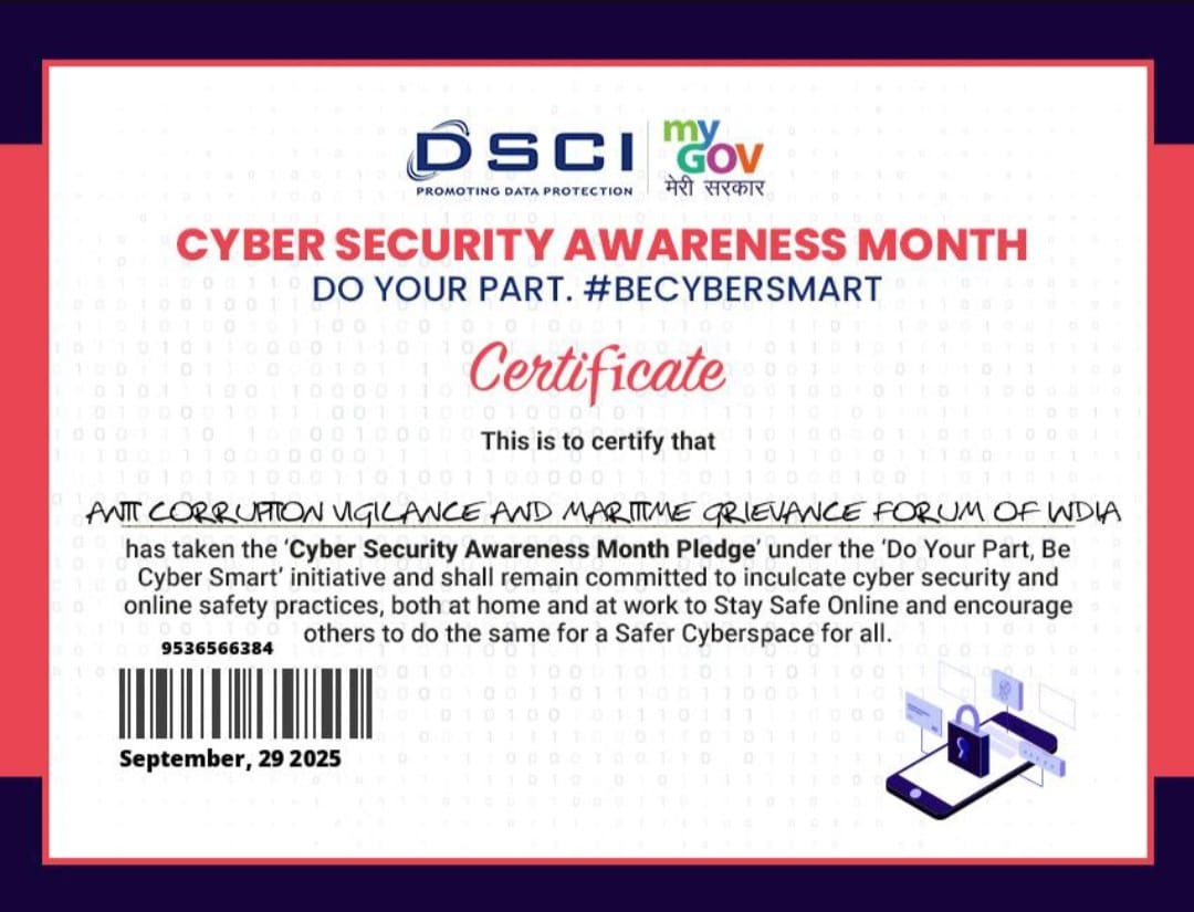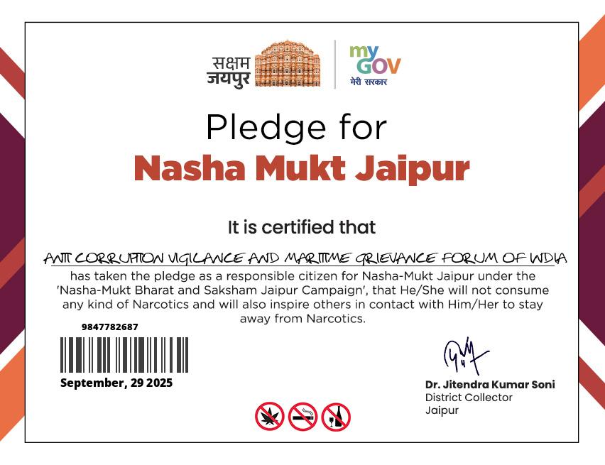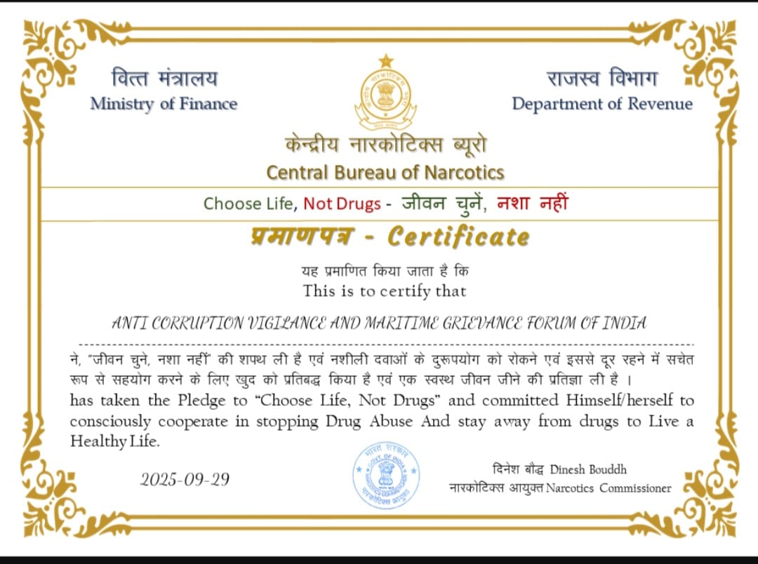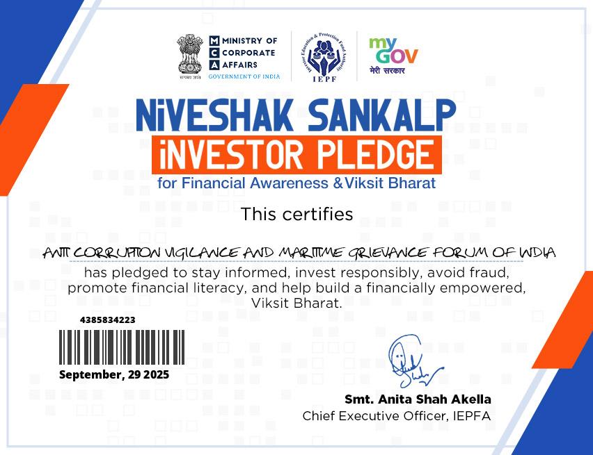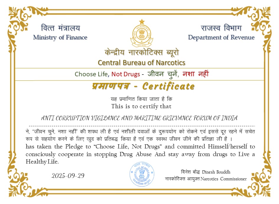 Welcome to the Anti-Corruption, Vigilance and Maritime Grievance Forum of India (ACVMGFI) β a national-level initiative dedicated to upholding transparency, justice, and accountability across Indiaβs maritime and social sectors.