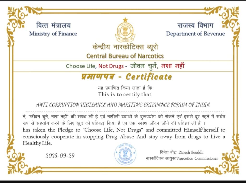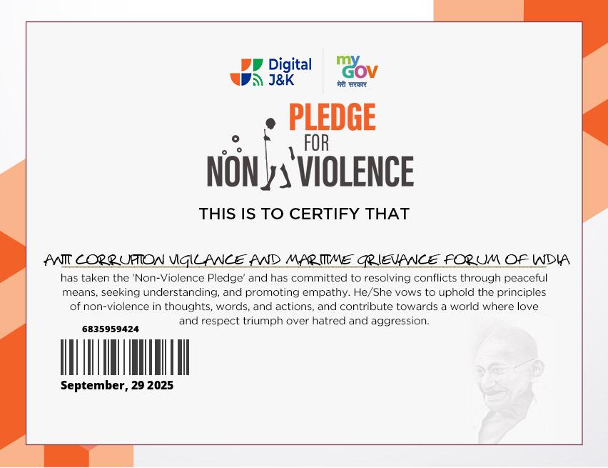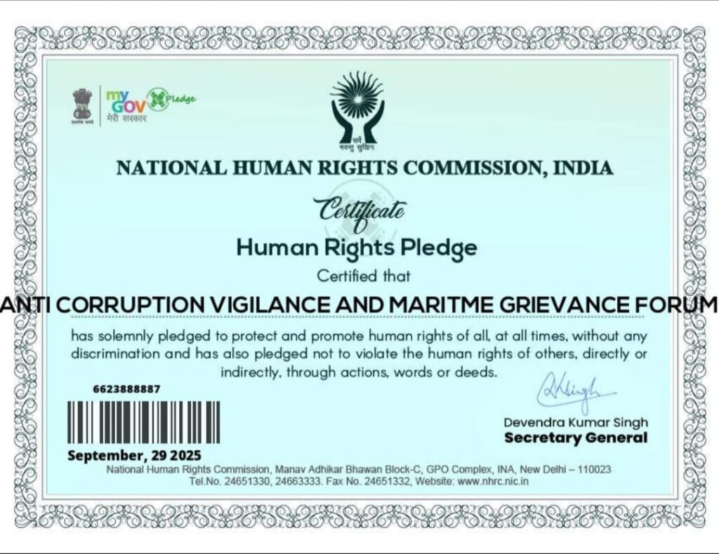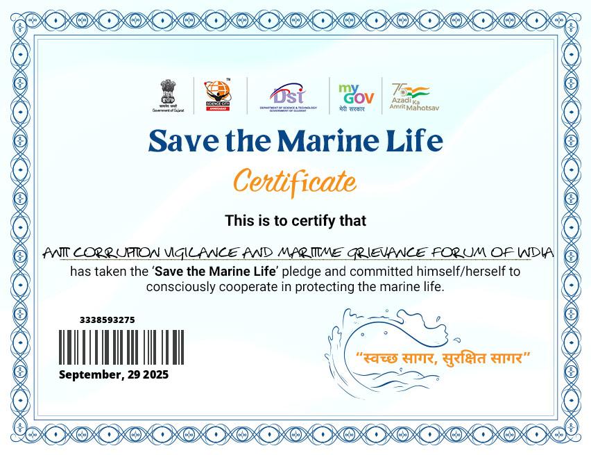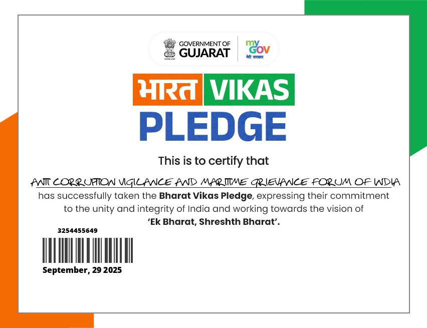 The Anti-Corruption, Vigilance and Maritime Grievance Forum of India is a multi-sectoral public welfare initiative registered under MSME, Government of India. We are committed to fighting corruption, protecting whistleblowers, assisting seafarers, and ensuring fair treatment for every individual facing injustice, negligence, or administrative failure.