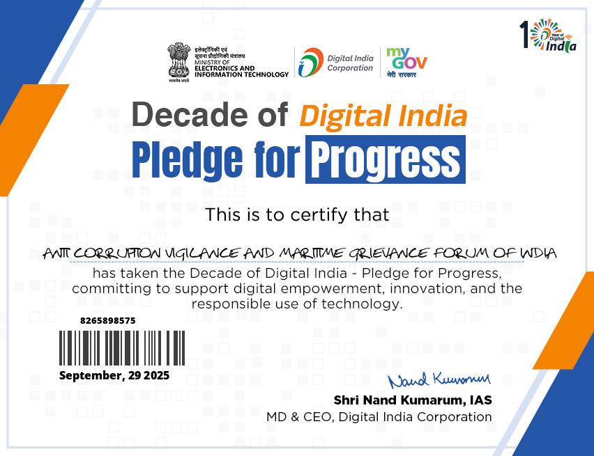 Welcome to the Anti-Corruption, Vigilance and Maritime Grievance Forum of India (ACVMGFI) โ a national-level initiative dedicated to upholding transparency, justice, and accountability across Indiaโs maritime and social sectors.